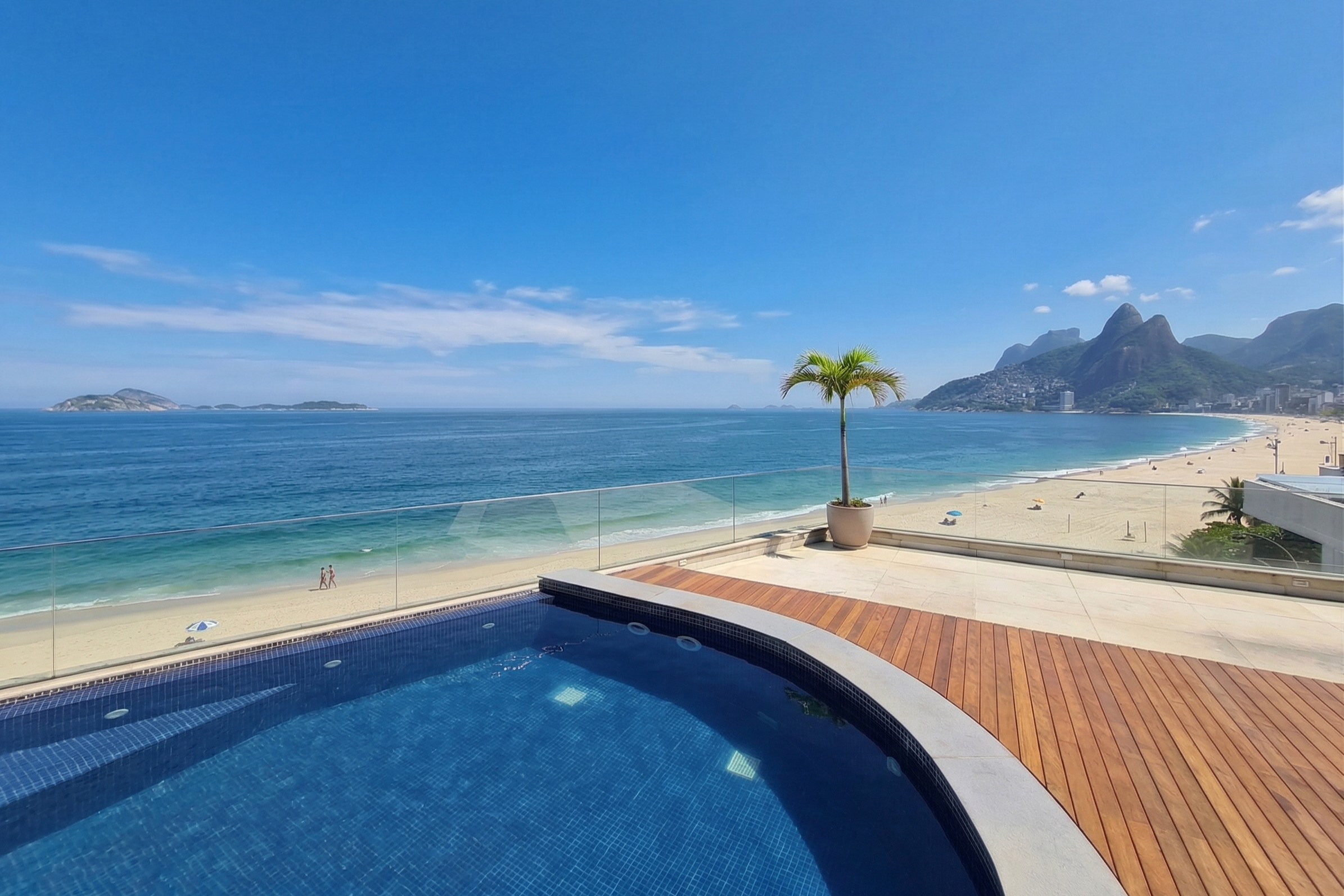 Introducing this exclusive 530 sqm. duplex penthouse in Arpoador, this property combines sophistication with a stunning panoramic ocean view stretching from the iconic Pedra do Arpoador to Morro Dois Irmãos. The first floor seamlessly integrates the social and private areas, offering a spacious living room with multiple areas and a frontal ocean view, a dining room, a powder room, a planned kitchen, and four suites — including the master suite with a walk-in closet. Ascending to the second floor, a private leisure space is revealed, highlighted by a terrace with an infinity pool, a gourmet area, a sauna, a welcoming family room with a wine cellar, and a fifth suite with a private balcony. The property also includes two parking spaces and is located in a high-standard building with an excellent facade and 24-hour security.