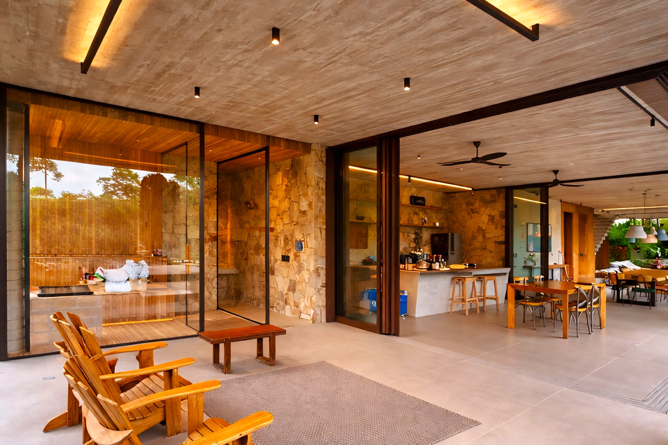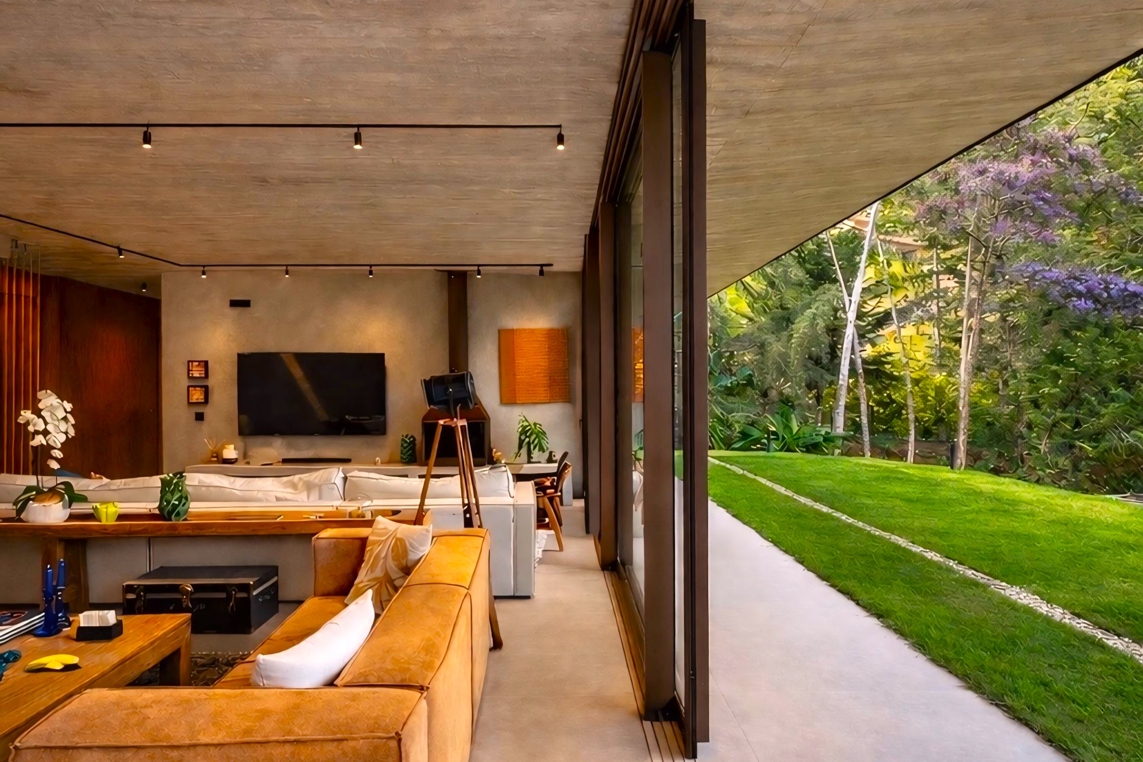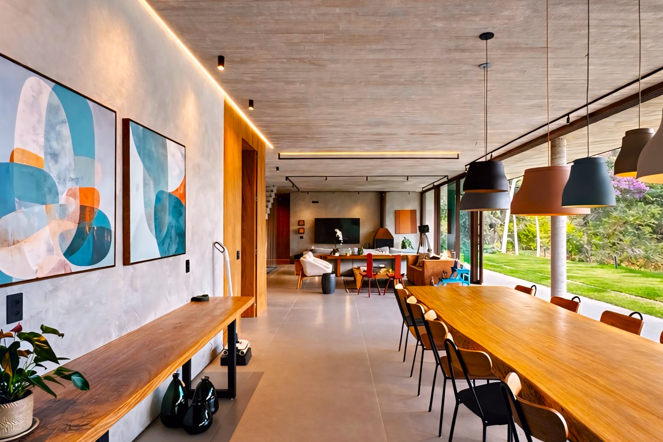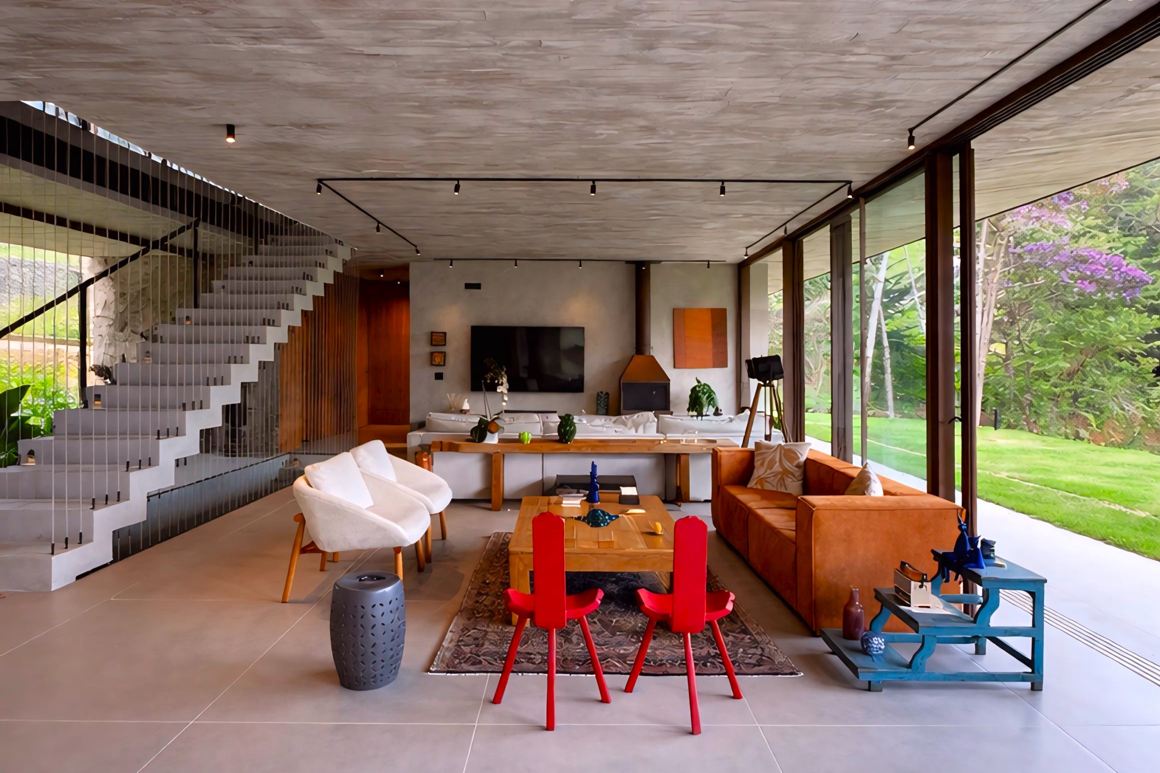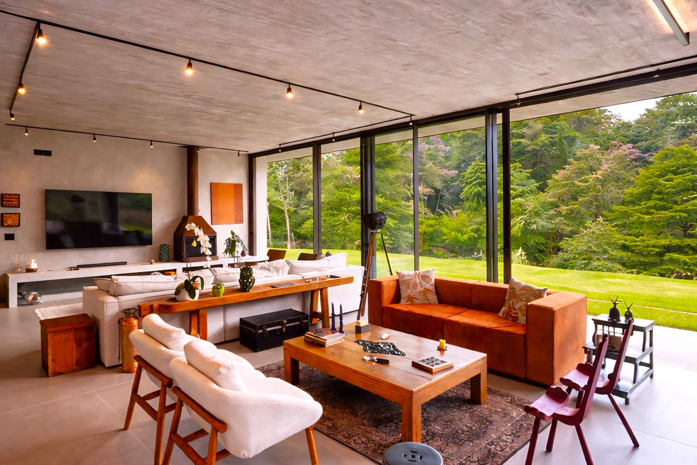 This contemporary 900 sqm residence, situated on a 7,000 sqm plot in the heart of the Atlantic Forest (Rock Valley Condominium), offers complete harmony with nature and a full range of amenities including 7 suites. The two-story main house features 4 suites on the upper floor, all with private balconies integrated into the main balcony. The ground floor offers ample parking, an office, a powder room, a living room with a fireplace, a climate-controlled wine cellar, and a spacious 75 m² gourmet area. The leisure area includes a dry sauna, a gym, a cinema room, and a heated infinity pool with a shallow end, as well as an equipped kitchen and service quarters. There is also an independent guest house with 2 suites, a living room, and a kitchen. The property features a sand court for beach tennis, fiber optic and Starlink internet with redundancy, a 70 kVA automatic generator, a photovoltaic system with an average generation of 2,800 kWh/month, and a hybrid water heating system. Inverter air conditioning is available in all bedrooms.