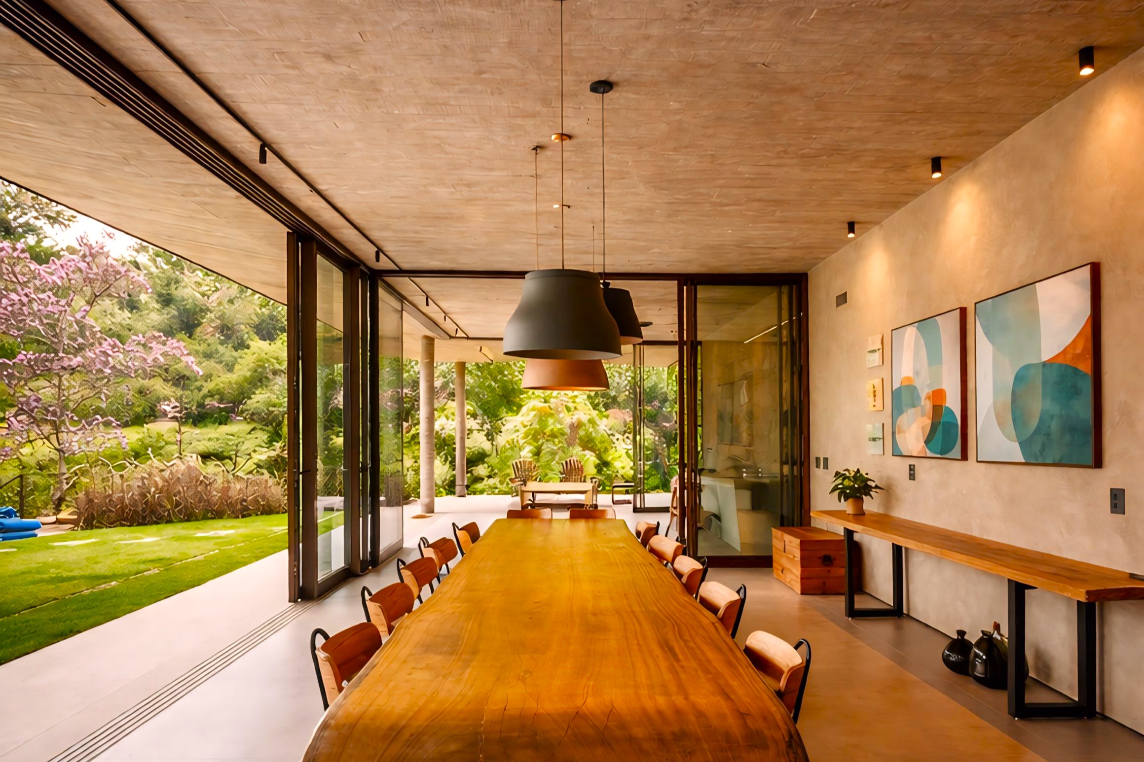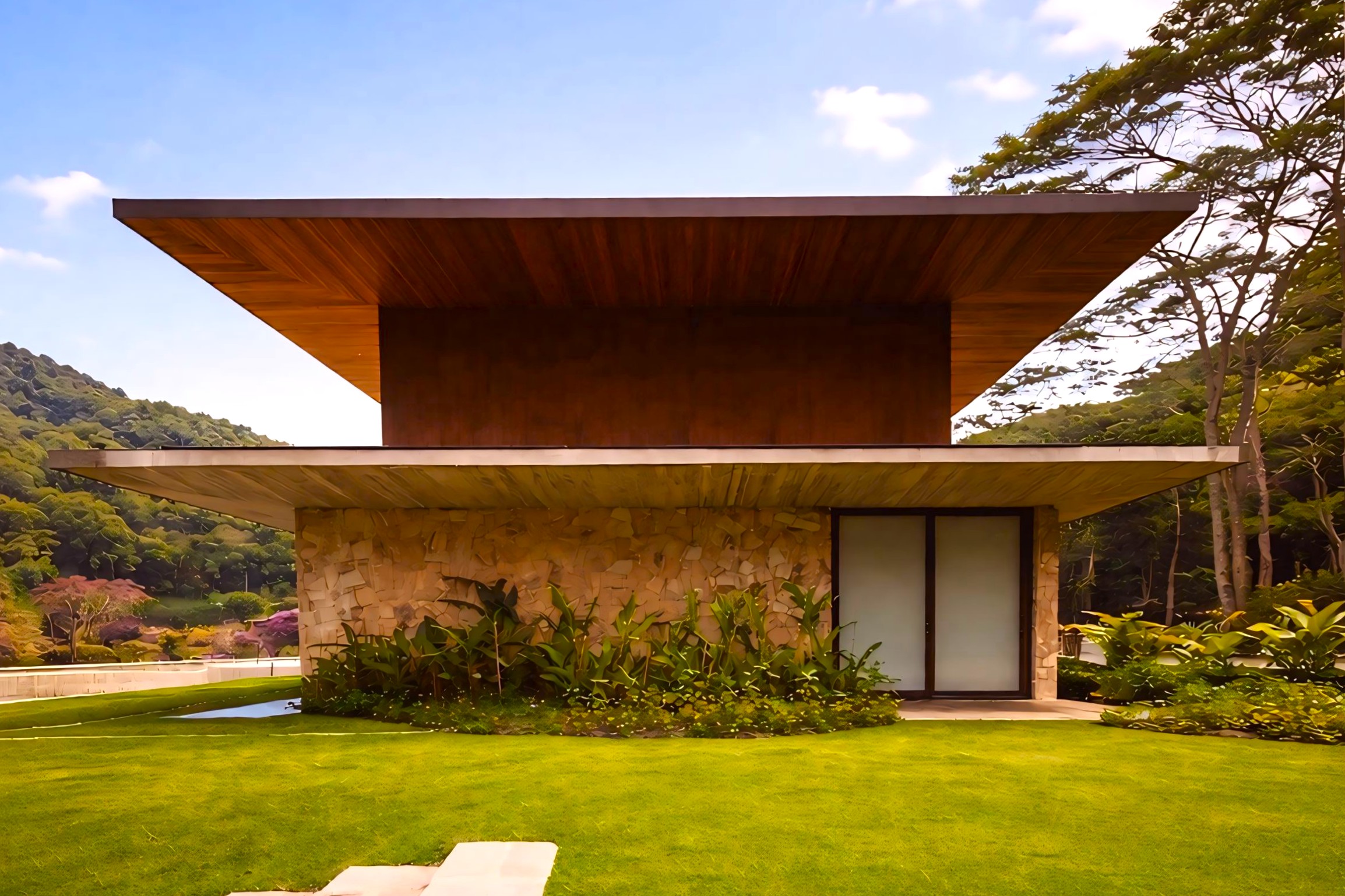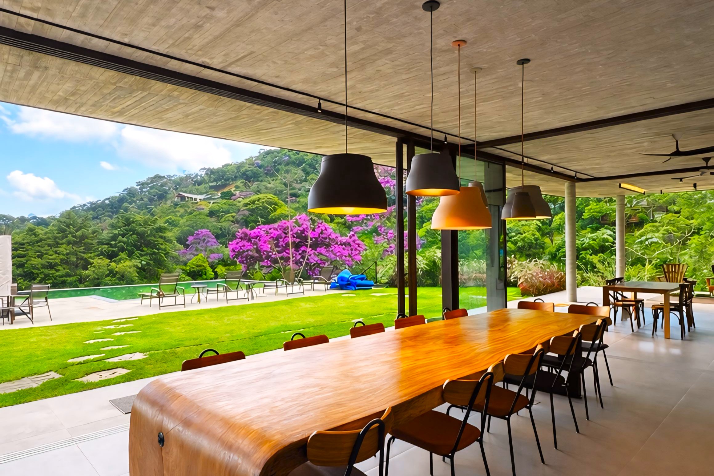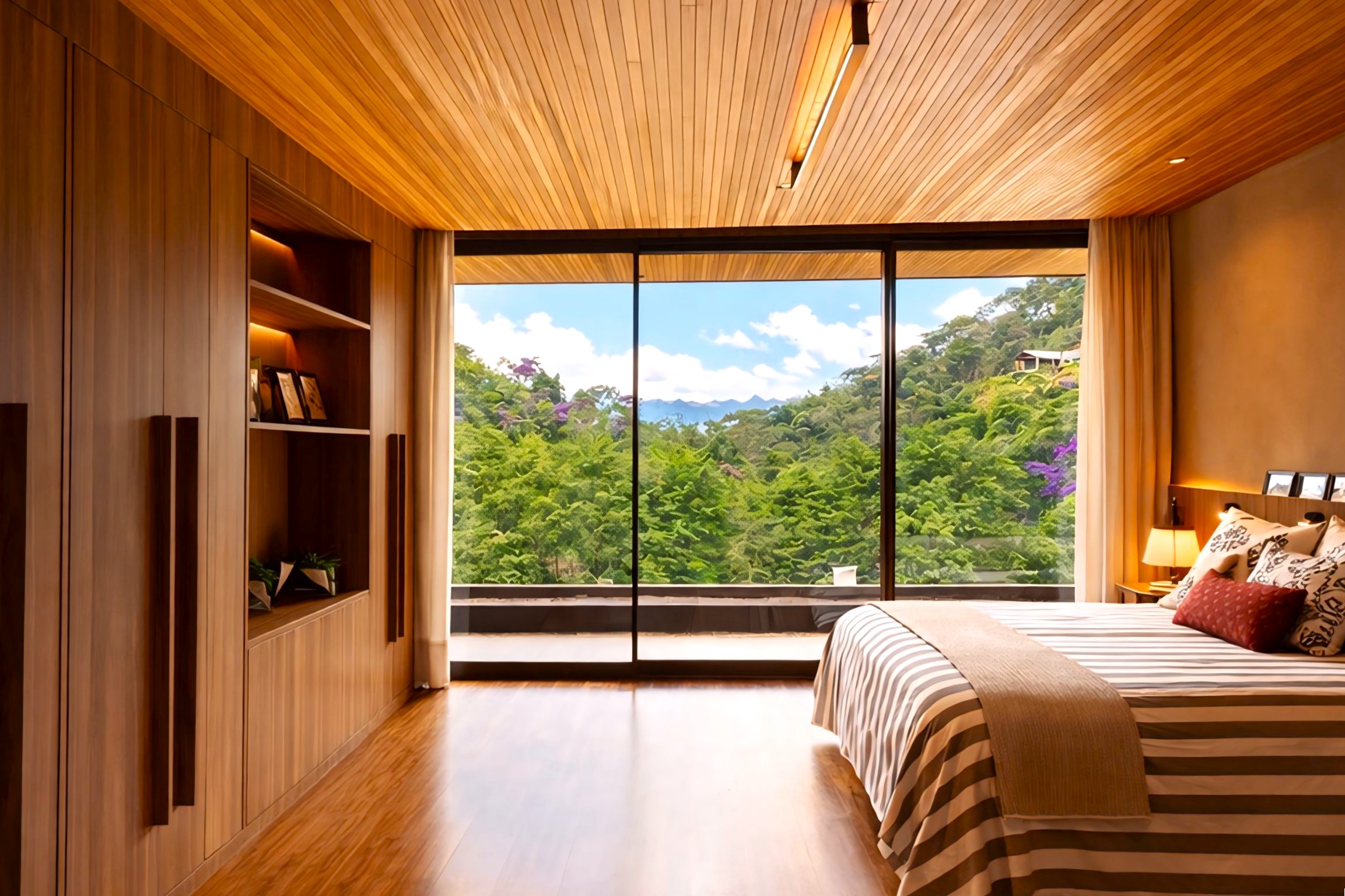 This contemporary 900 sqm residence, situated on a 7,000 sqm plot in the heart of the Atlantic Forest (Rock Valley Condominium), offers complete harmony with nature and a full range of amenities including 7 suites. The two-story main house features 4 suites on the upper floor, all with private balconies integrated into the main balcony. The ground floor offers ample parking, an office, a powder room, a living room with a fireplace, a climate-controlled wine cellar, and a spacious 75 m² gourmet area. The leisure area includes a dry sauna, a gym, a cinema room, and a heated infinity pool with a shallow end, as well as an equipped kitchen and service quarters. There is also an independent guest house with 2 suites, a living room, and a kitchen. The property features a sand court for beach tennis, fiber optic and Starlink internet with redundancy, a 70 kVA automatic generator, a photovoltaic system with an average generation of 2,800 kWh/month, and a hybrid water heating system. Inverter air conditioning is available in all bedrooms.