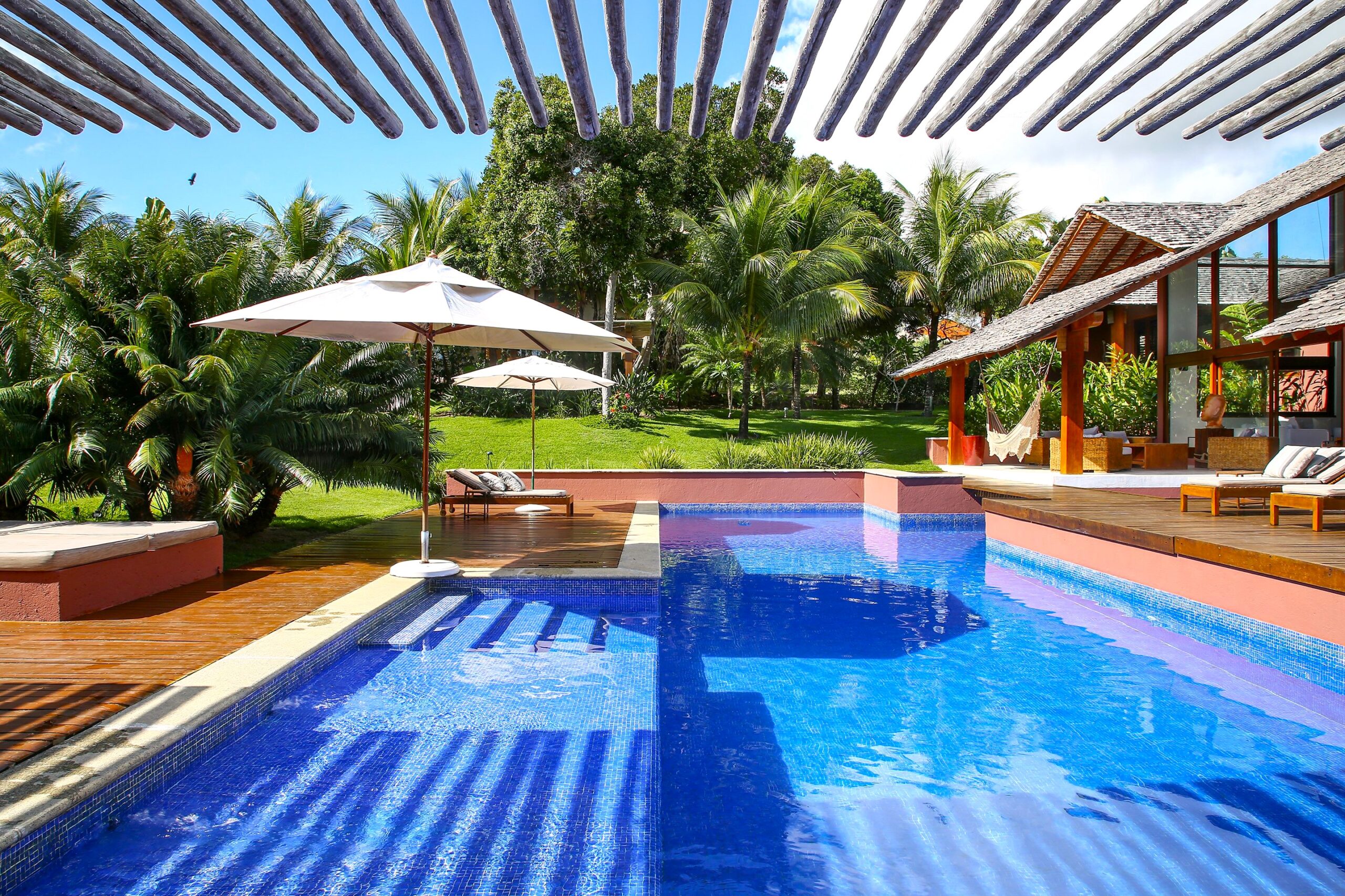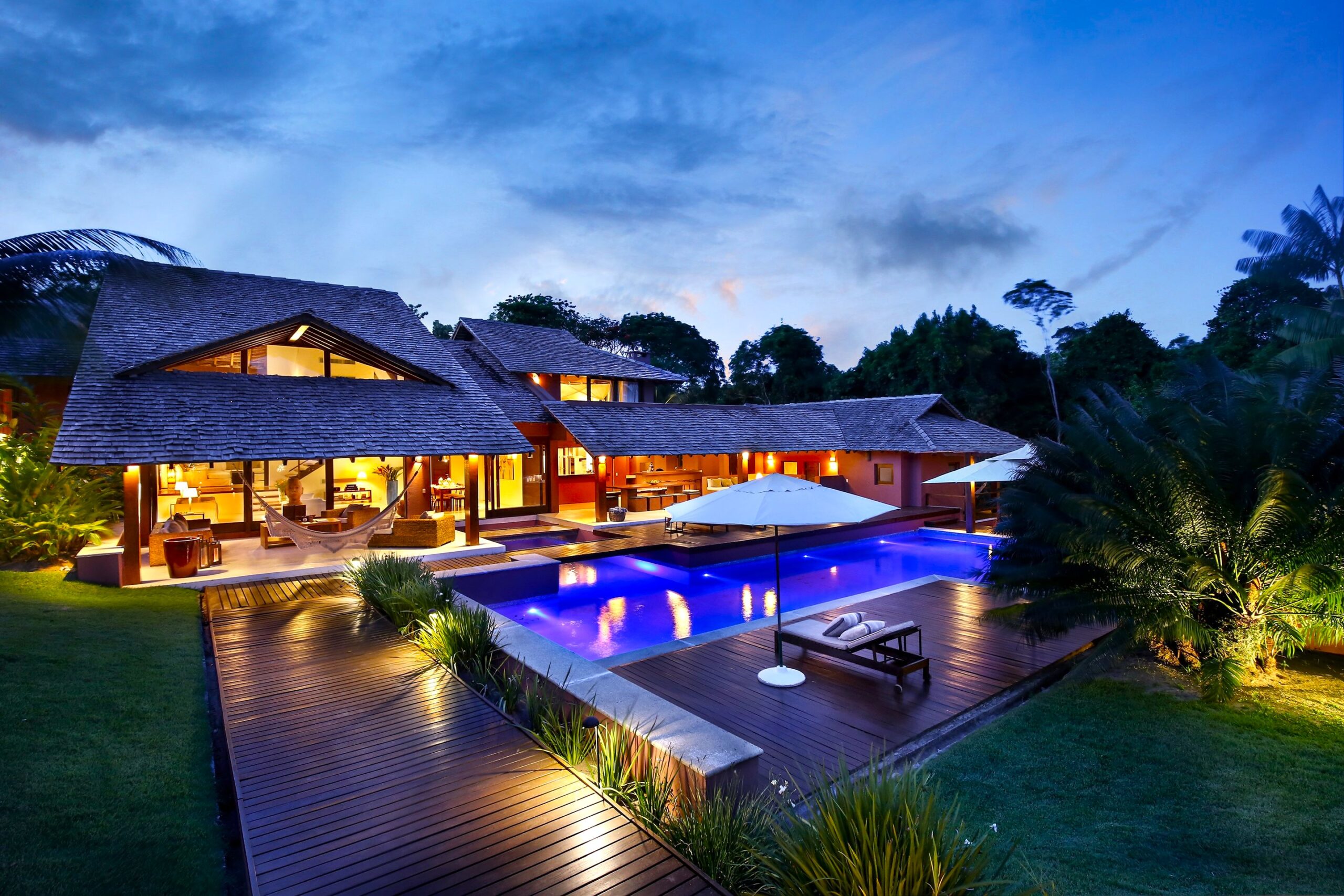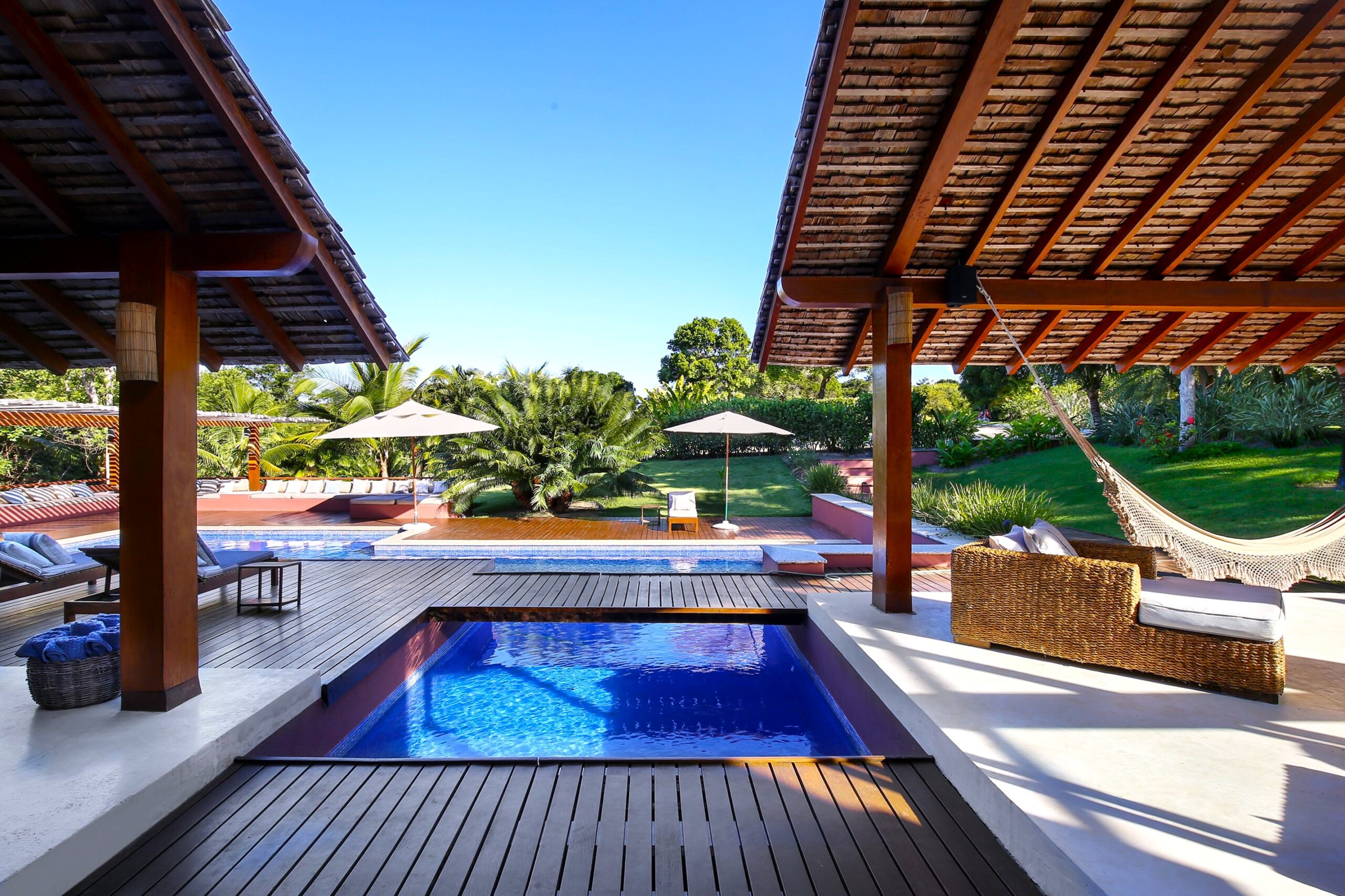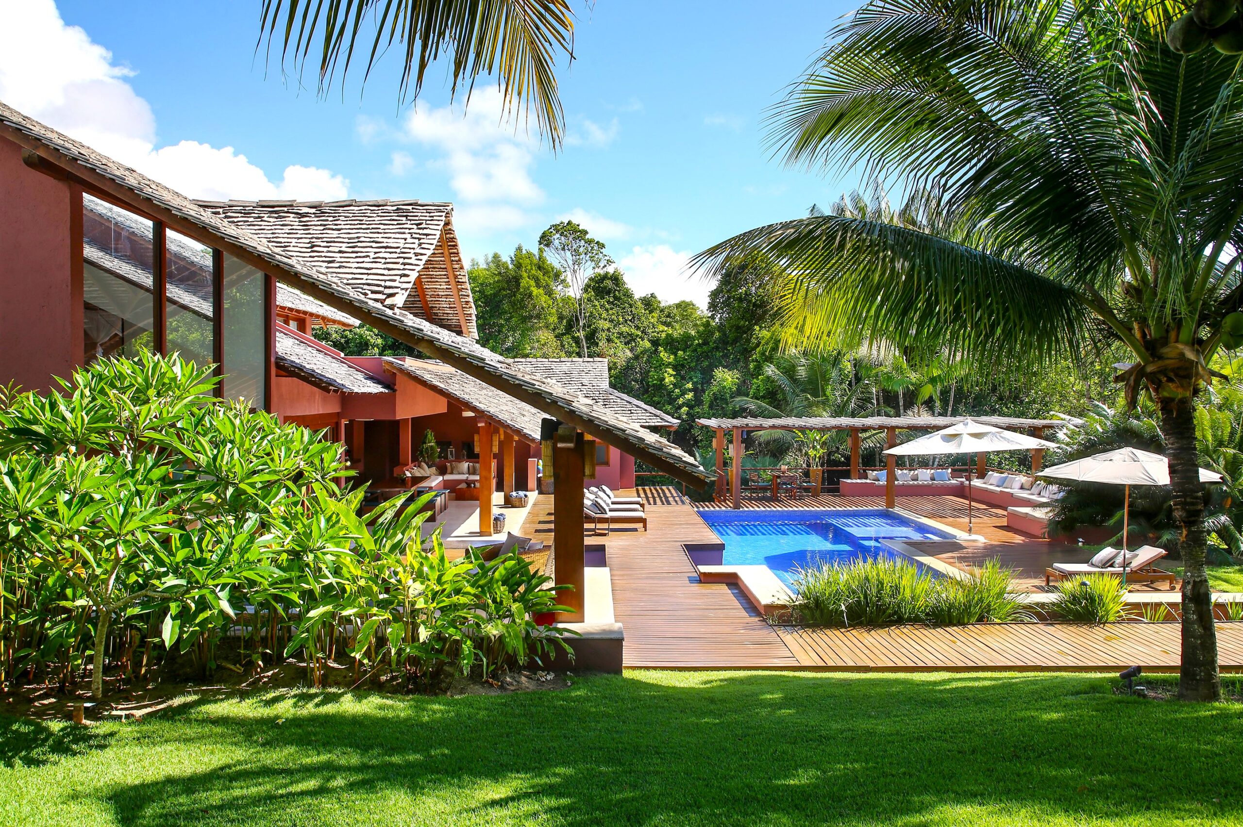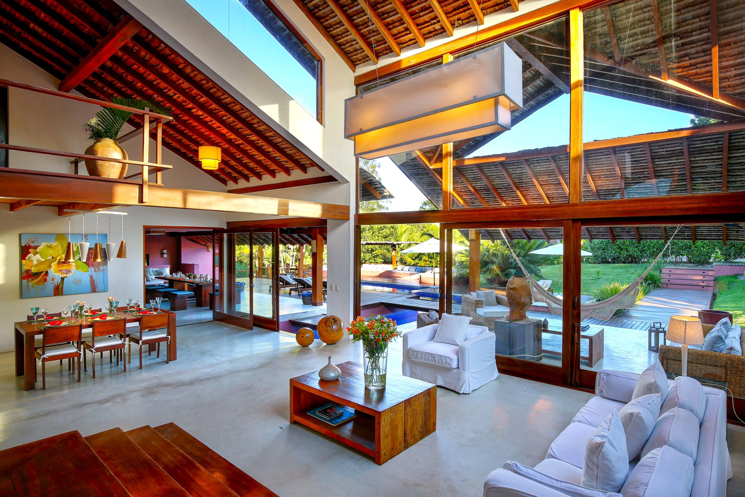 Located in the Terravista Golf condominium in Trancoso, this stunning 710 sqm house on a 2,095 sqm lot offers the perfect balance between sophistication and nature. The property borders the Atlantic Forest. The residence features six suites, including a master suite on the upper floor with open views, a walk-in closet, and a whirlpool tub. The leisure and living areas invite relaxation. The house features a beautiful swimming pool with a gazebo. The covered gourmet area seamlessly integrates with the pool. This is a unique opportunity to live in one of Bahia’s most desirable destinations.