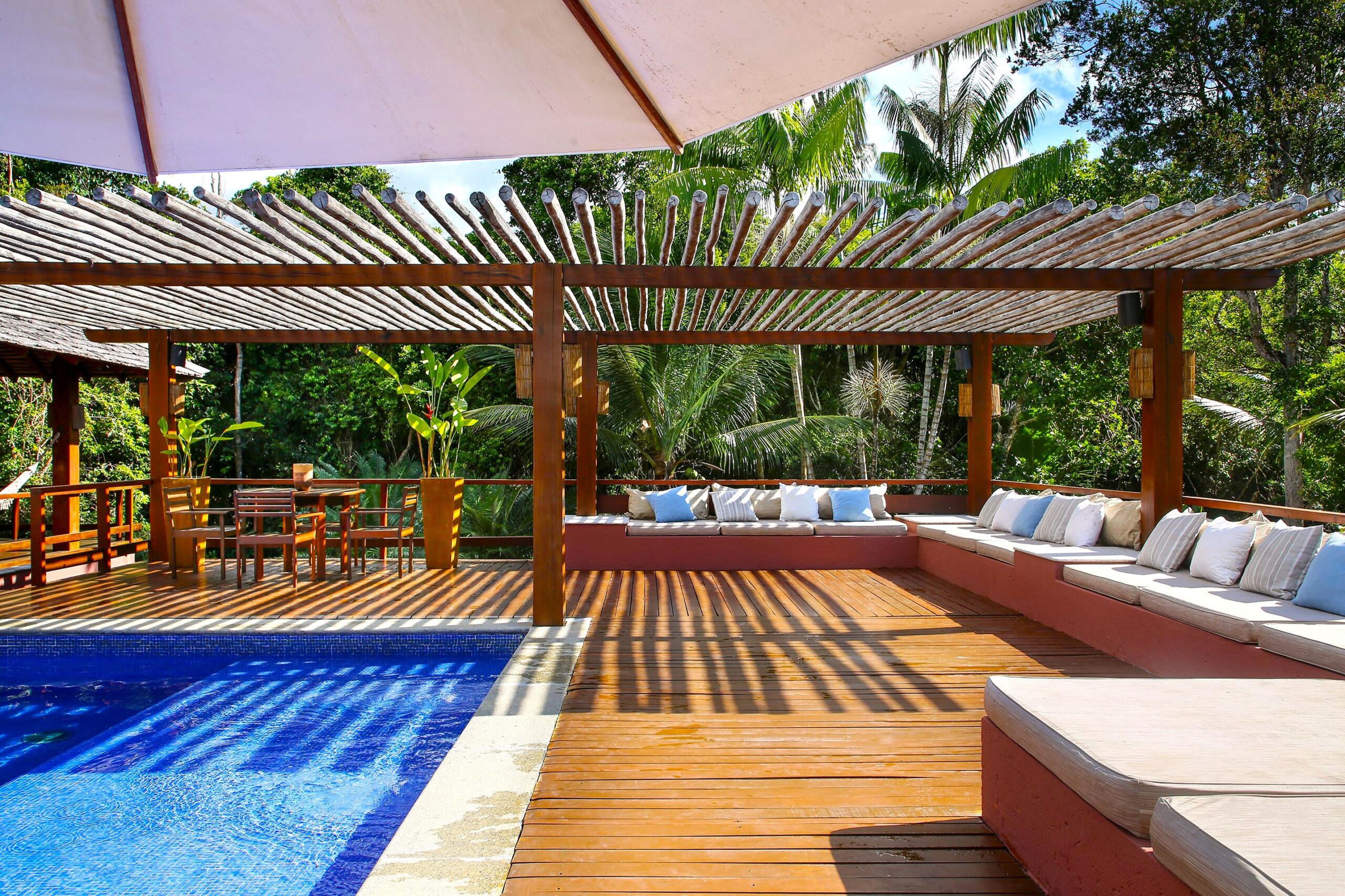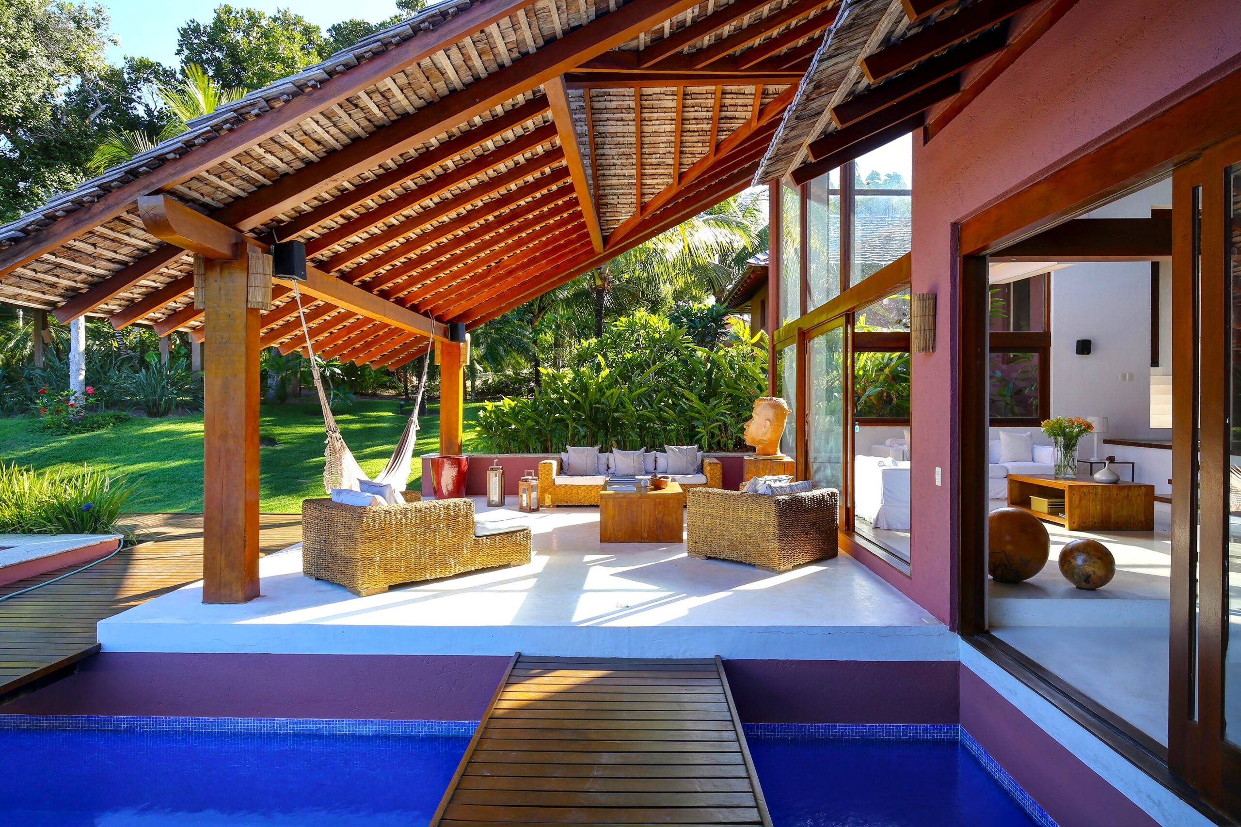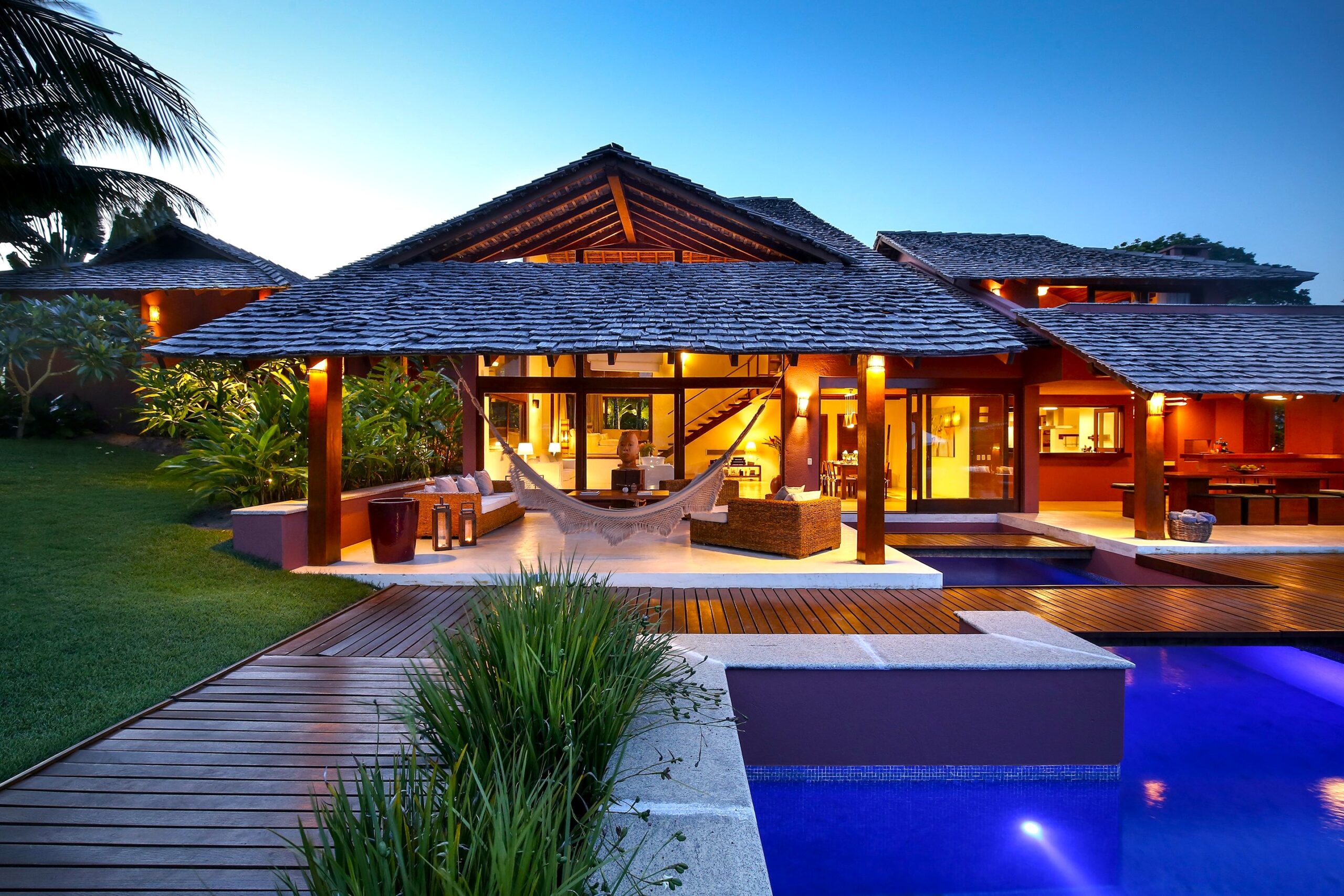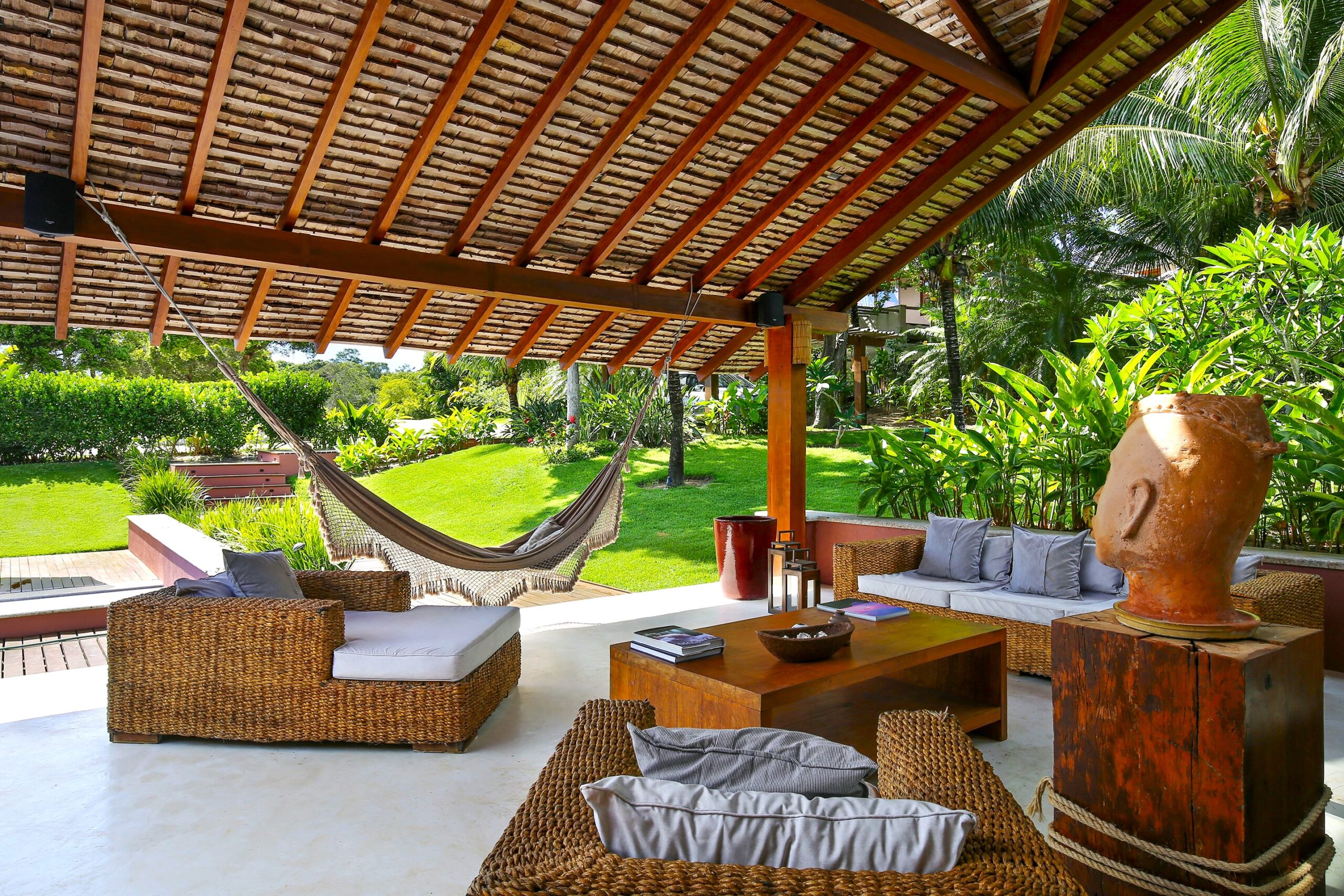 Located in the Terravista Golf condominium in Trancoso, this stunning 710 sqm house on a 2,095 sqm lot offers the perfect balance between sophistication and nature. The property borders the Atlantic Forest. The residence features six suites, including a master suite on the upper floor with open views, a walk-in closet, and a whirlpool tub. The leisure and living areas invite relaxation. The house features a beautiful swimming pool with a gazebo. The covered gourmet area seamlessly integrates with the pool. This is a unique opportunity to live in one of Bahia’s most desirable destinations.